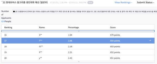 - 그래도 1~4번은 다행히 만점을 받았고, 순위는 17등이었다.